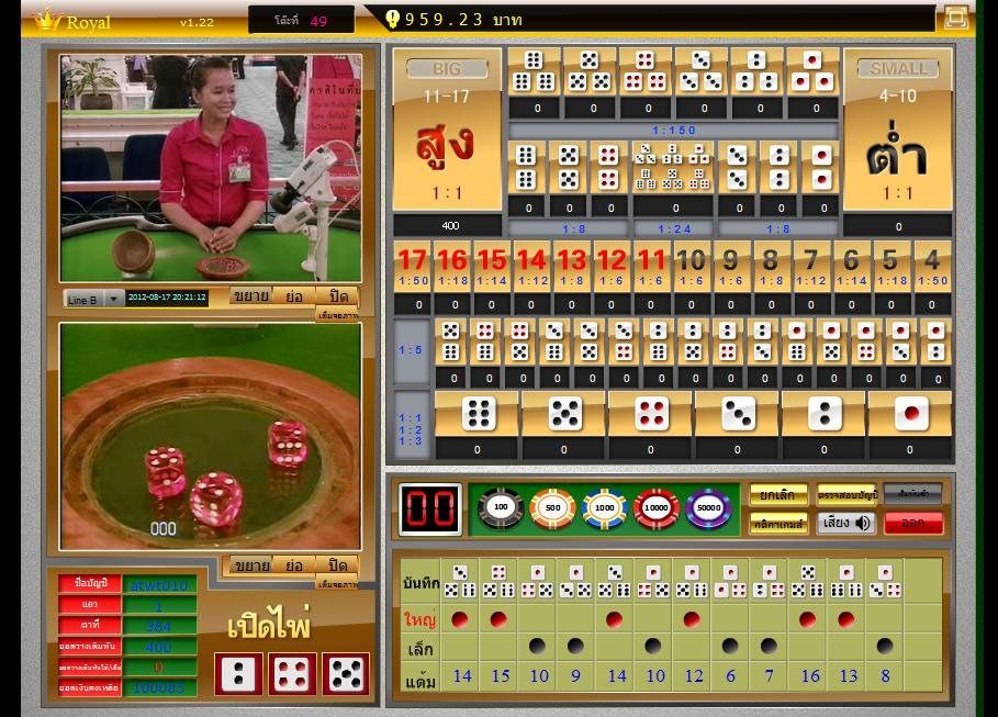 | สูง/ต่ำ | สูง:จำนวนยอดรวมของแต้มคือ11ถึง17(กรณีออกตองเจ้ามือชนะ) ต่ำ:จำนวนยอดรวมของแต้มคือ4ถึง10 (กรณีออกตองเจ้ามือชนะ) | 1ต่อ1 |